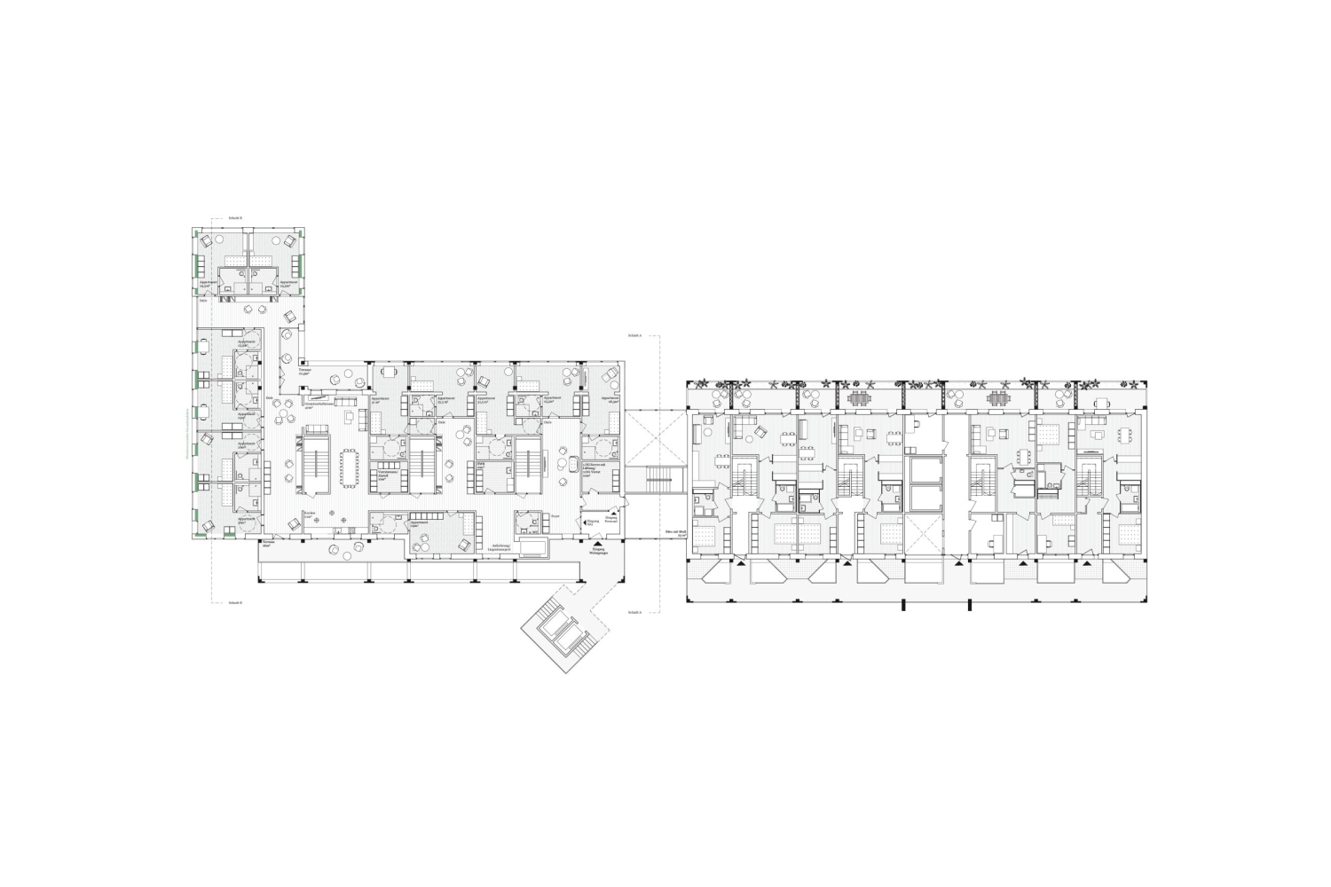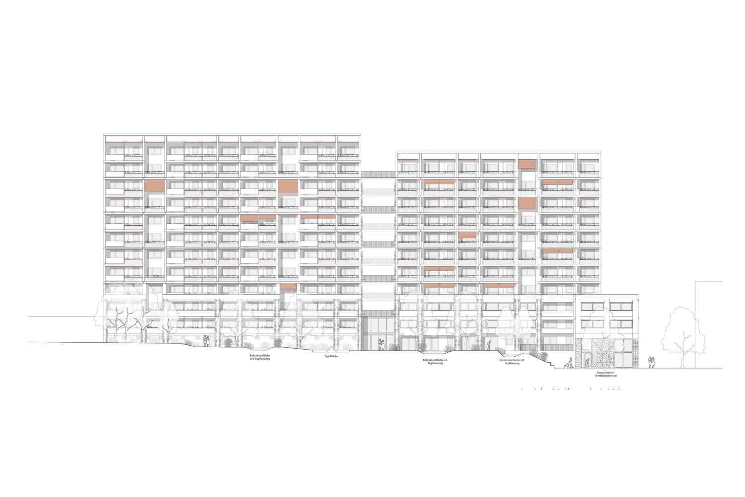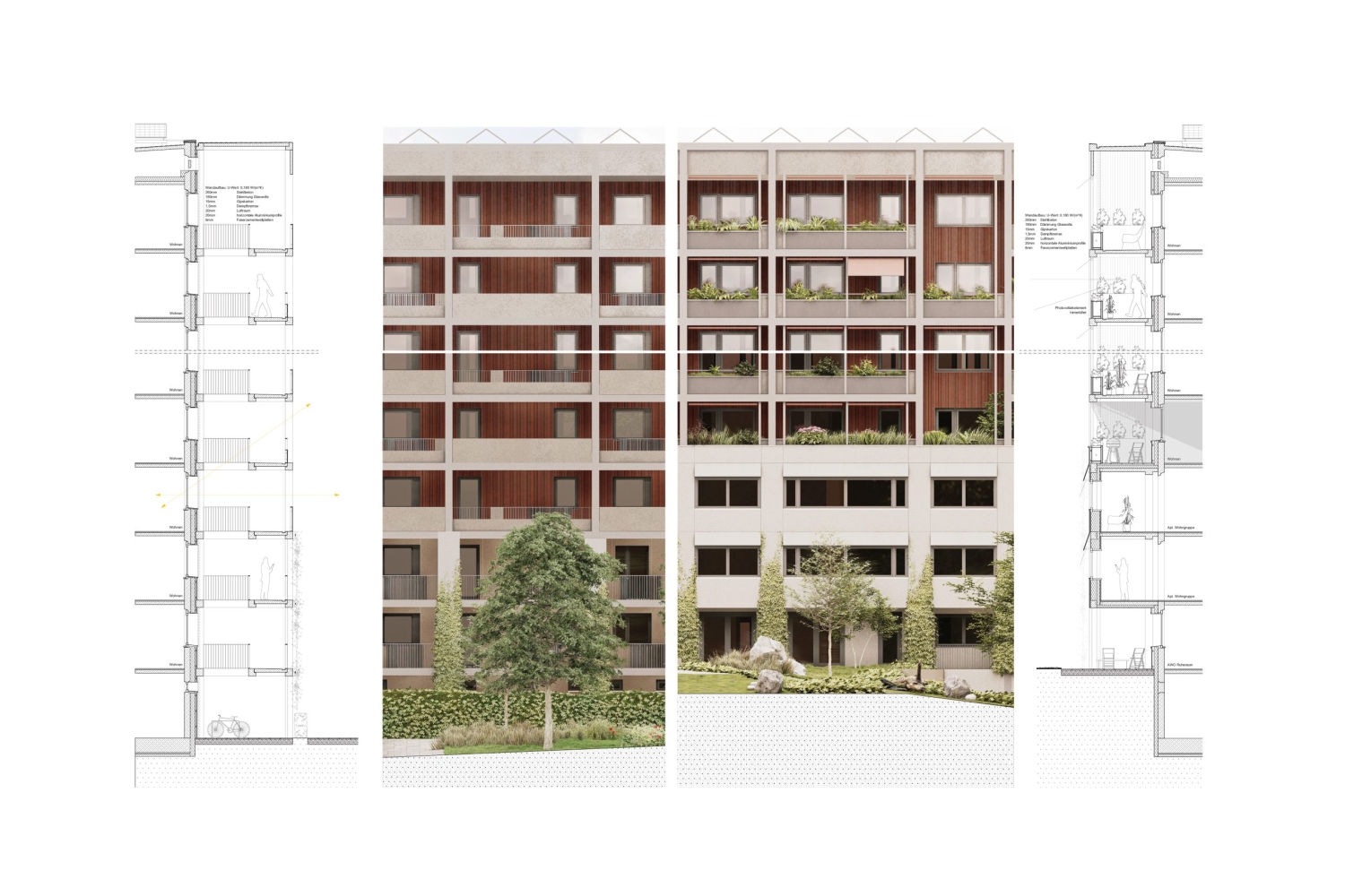 Das Entwurfskonzept transformiert das Typenhaus WBS70 in ein lebendiges und vielschichtiges Zentrum für Erfurts Herrenberg. Das herausragende und von weitem sichtbare Gebäude, wird saniert und zum neuen sozialen Treffpunkt für die Bewohner und das ganze umliegende Herrenberg-Quartier umgewandelt. Die neue Architektur organisiert verschiedene Öffentlichkeiten und gibt den Bewohnern einen Ort des Zusammenlebens. Die bisher anonyme Scheibe mit monotoner Lochfassade wird zu einem vielschichtigen Bauwerk welches sich als ausdifferenzierter Baukörper selbstbewusst präsentiert. Dabei werden verschiedene neue Elemente angefügt, welche den Bestandsbau brandschutztechnisch und nachhaltig aufrüsten und damit für Bewohner und Umwelt zu einem wertvollen und zukunftsfähigen Bau weiterentwickeln.