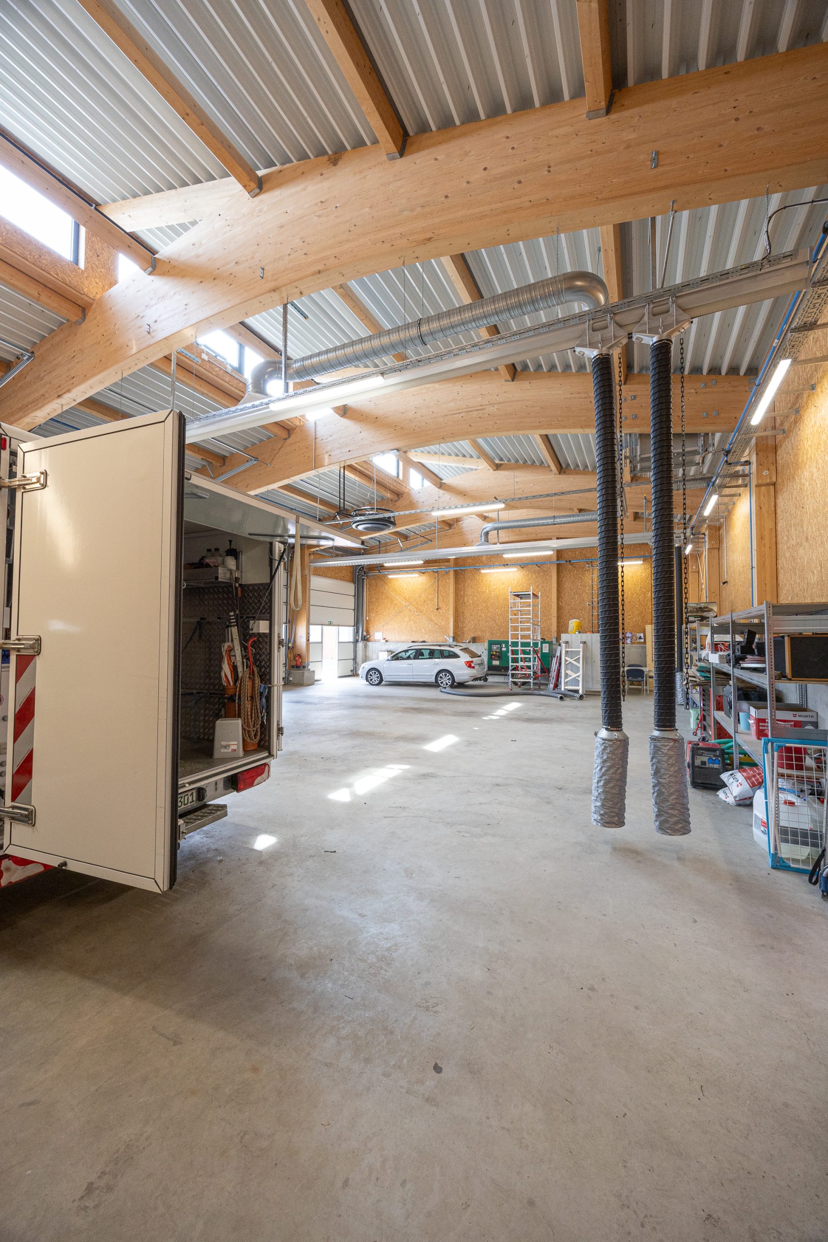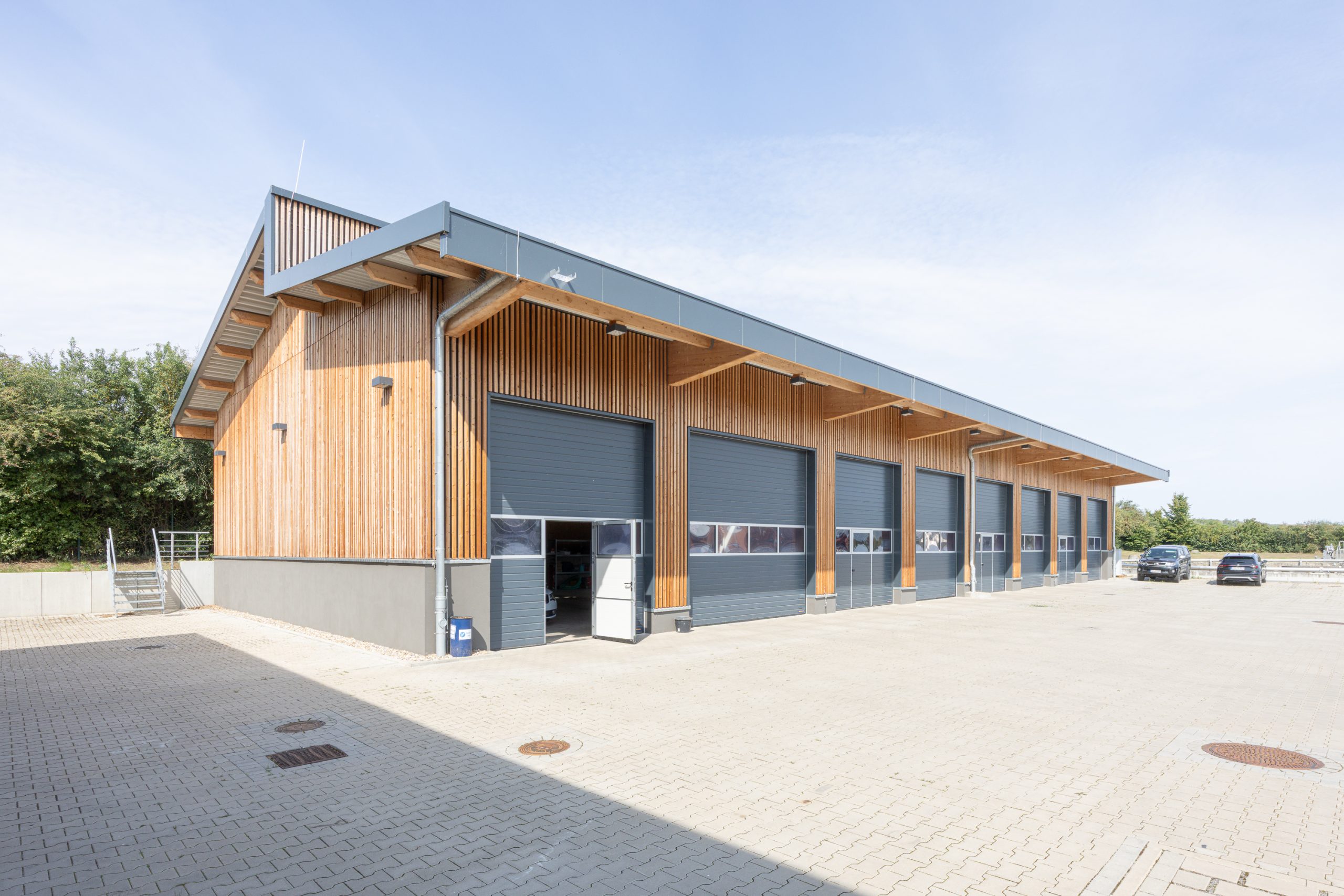 Der neue Garagenkomplex für Spezialfahrzeuge ist der erste Baustein umfangreicher Um- und Neubaumaßnahmen des Wasser- und Abwasserzweckverbandes Saalkreis in Pfützthal, die wir als Generalplaner begleiten. Während auch die neuen Außenanlagen und eine neue Kabelbrücke bereits in Arbeit sind, werden das Betriebsgebäude und die Gebläsestation im nächsten Schritt modernisiert und umgebaut.
