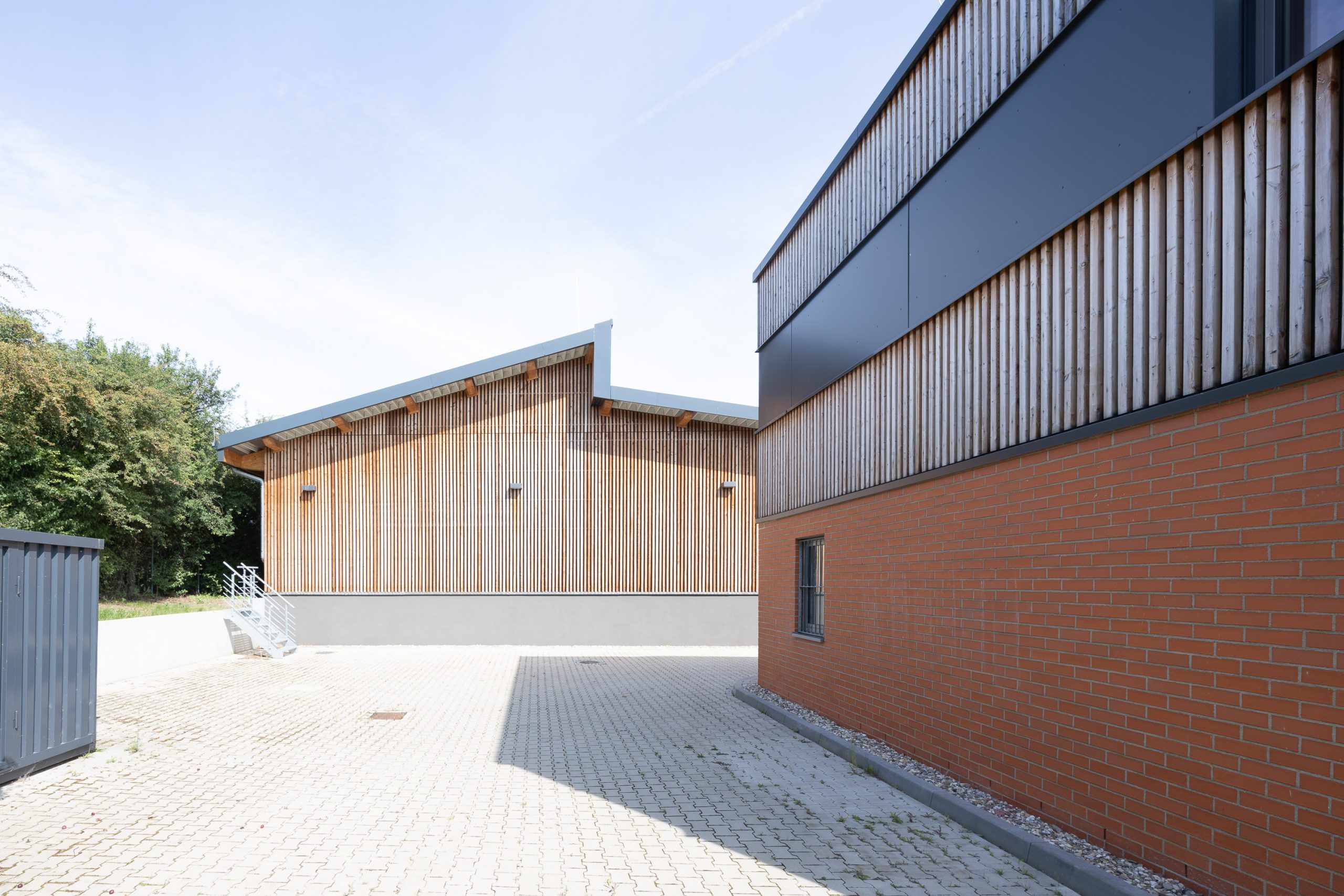 Die nachhaltige Hybrid-Tragkonstruktion aus Holz, Stahl und Stahlbeton trägt eine Fassade aus Lärchenholz, das Dach eine Photovoltaikanlage.