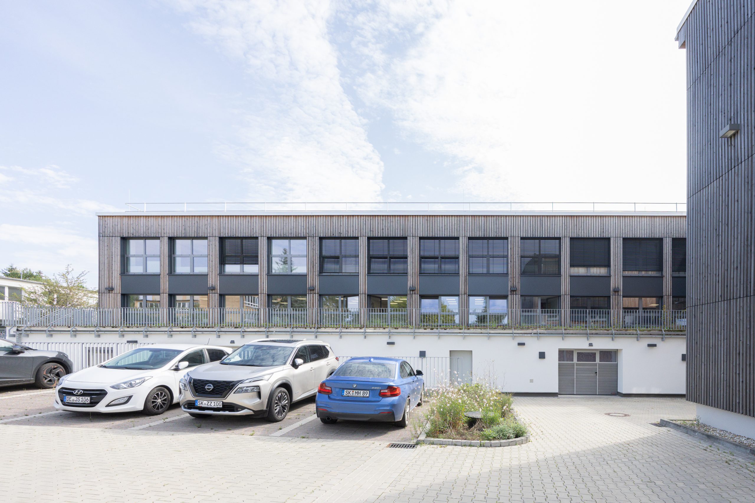 Die bestehenden Gebäude wurden für eine effiziente Büronutzung ausgelegt und durch das einziehen eines zusätzlichen Geschosses um dringend benötigte Flächen erweitert. Das Untergeschoss wurde zudem zu funktionalen Archiv- und Lagerflächen ausgebaut.