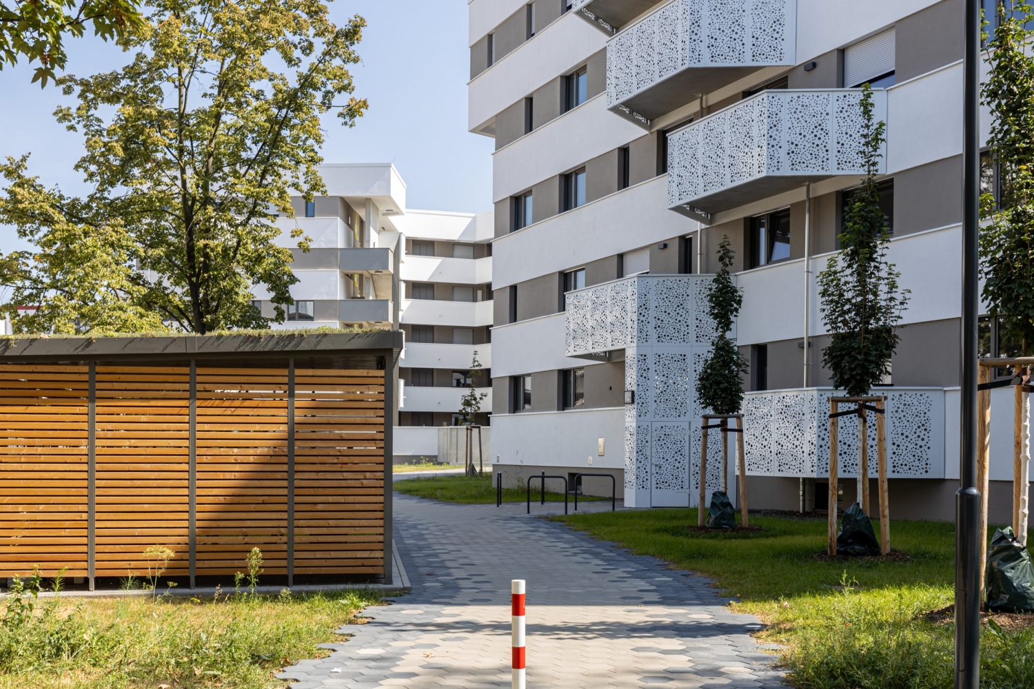 Halle-Neustadt zeigt sich hier von seiner besten Seite: grün – ruhig – lebenswert! Am nördlichen Rand zum Stadtpark Heide-Süd und am Übergang zum Wirtschafts- und Innovationspark entstehen hier ca. 330 Wohnungen und zusätzliche Gewerbeflächen. Aus Respekt vor der homogenen und unikalen Neustädter Bebauung in seiner städtebaulichen stringenten Umsetzung, folgen wir nicht dem Prinzip des „einfachen Weiterbauens“. Als zeitgenössische Interpretation und lebendige Fortschreibung des Gedankens der modernen Stadt setzen wir neuartige Baukörper in einen gemeinschaftlichen Park. Es entstehen spektakuläre Ausblicke in alle Richtungen aus großzügigen Terrassenwohnungen. Zehn Gebäude in viererlei Bautypen schaffen als Baugruppe mit einheitlichem Gestaltungskanon die Grundlage für eine harmonische Nachbarschaft und einen lebendigen Impuls für den ganzen Stadtteil.